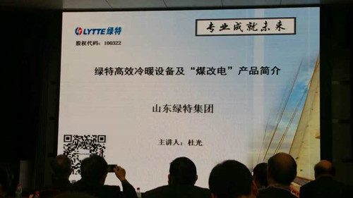 綠特集團(tuán)綠特營(yíng)銷總監(jiān)杜光在會(huì)議上以“綠特冷暖設(shè)備及煤改電產(chǎn)品簡(jiǎn)介”為主題做了重要匯報(bào),在匯報(bào)過程中,杜總針對(duì)當(dāng)下暖通行業(yè)的發(fā)展現(xiàn)狀以及煤改電等政策的條件下,綠特不斷研發(fā)新的產(chǎn)品技術(shù),以適應(yīng)行業(yè)發(fā)展需求,通過對(duì)公司在熱泵與鍋爐等產(chǎn)品應(yīng)用中的技術(shù)與案例進(jìn)行詳細(xì)的介紹,充分體現(xiàn)了綠特在打造綠色發(fā)展中取得的良好效益與經(jīng)濟(jì)效益,讓綠特產(chǎn)品在為推動(dòng)綠色暖通行業(yè)的發(fā)展做出更多的貢獻(xiàn)。
