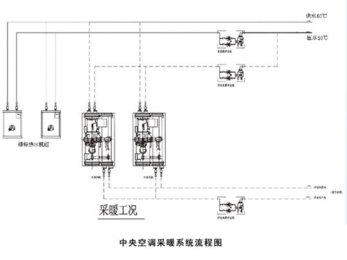 3 、由于冬季采暖時(shí)循環(huán)水流量比夏季小,一般將冷凍水循環(huán)泵與采暖循環(huán)泵獨(dú)立設(shè)置,可以節(jié)省運(yùn)行電費(fèi)。